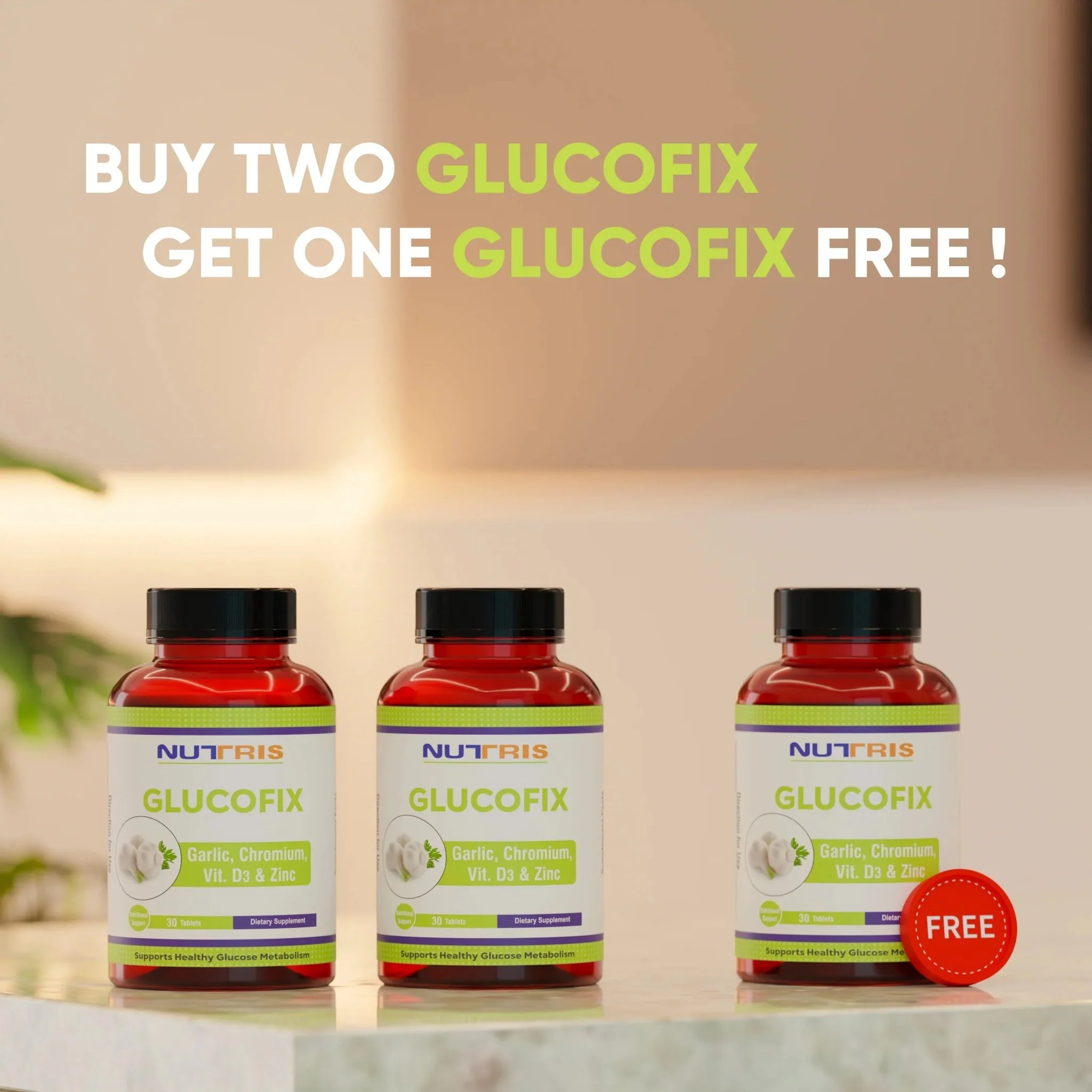 Glucofix is an effective food supplement, containing 11 essential nutrients that support healthy glucose metabolism by reducing blood sugar levels. It contains Garlic extract which supports to reduce blood sugar levels and maintains cardiovascular health. It includes Chromium Picolinate which helps to decrease pre-meal or fasting blood sugar levels.